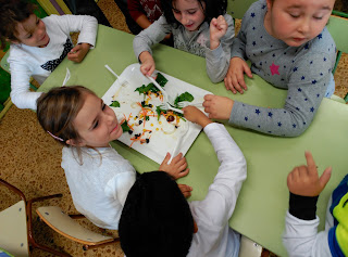 Hemos probado todo: aceitunas negras, espinacas, caballa, maíz, tomates cherry, zanahoria... Después como buenos cocineros hemos recogido y limpiado las mesas.